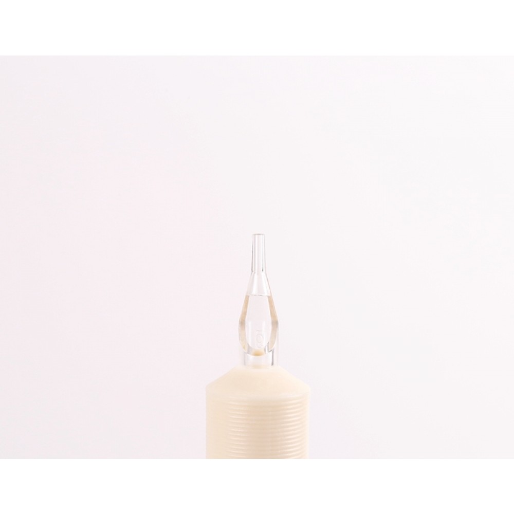 ROUND TIP WHITE DISPOSABLE TUBE These 1" diameter grip white plastic tattoo tubes offer a clear optical view of your needles and the ink flow which can be used with all round outliner needles. They are all individually packed and sterilized for single use. These tattooing full tubes are manufactured so that there is no friction or restriction on the needle bar inside. 's use of only non-recycled plastic in our tubes to ensure the highest grade product. ALL DISPOSABLE TUBES ARE E.O. GAS PRE-STERILIZED AND READY TO USE