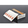 2nd Generation True Color Spark Cartridges with safety membrane. These 10-Gauge, Bugpin 7 Magnum Curved Needles are specially designed to hold more ink to make blending and coloring large areas easier, with less impact to the skin. The “Curve” on the taper points allows the artist to angle the needle when tattooing, which allows the ink to be packed for a higher concentration on tight spots and confined areas. The tighter spacing between the needles give “portrait” tattoos a smoother, fuller look with more depth and life.